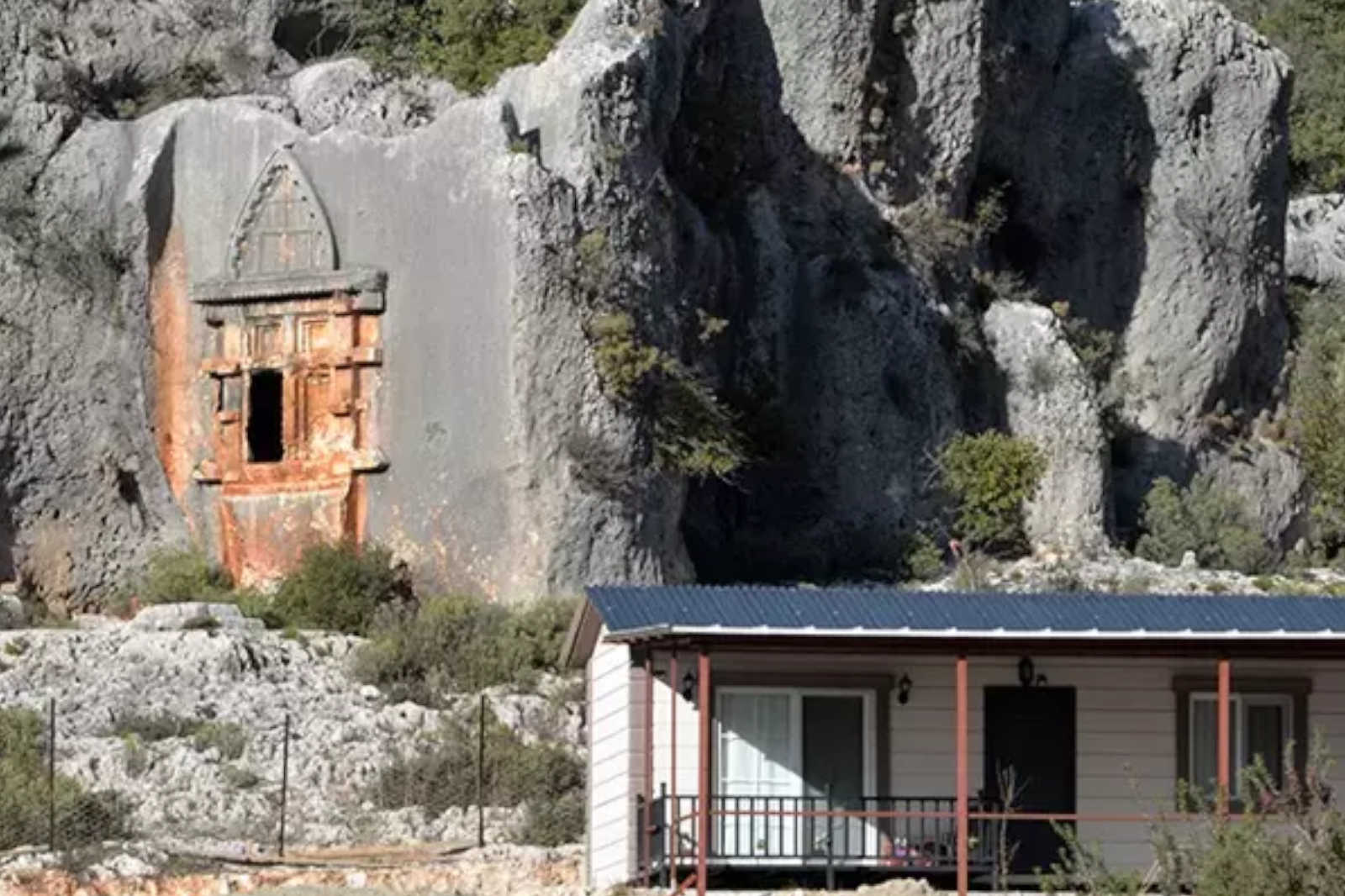 Antalya’nın tarih ve doğanın iç içe geçtiği ilçelerinden Demre’de binlerce yıllık tarihi kaya mezarın önüne kaçak ev yapıldı. Kaya mezarın görünümünü engelleyen evin kaldırılması için Demre Belediyesi tarafından gönderilen tebligata rağmen karar uygulanmadı.